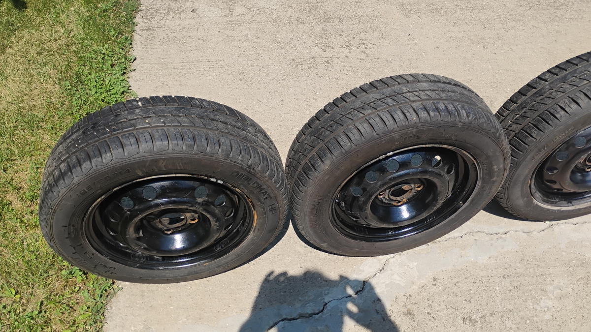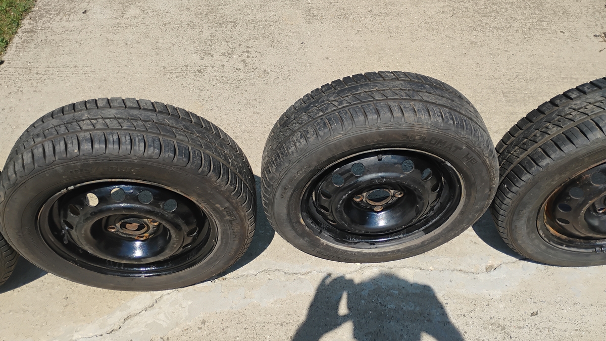 Vand 4 anvelope auto cu janta din tabla, Diplomat HP, 185/60R14 si una Presto 185/60R14, pret 150 lei bucata,