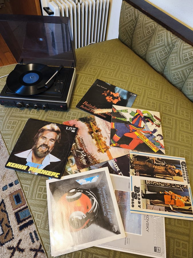 Aparatura aia este cea care se vede in poze respectiv televizor pick up cu placi pentru cine vrea si placi combina DVD video