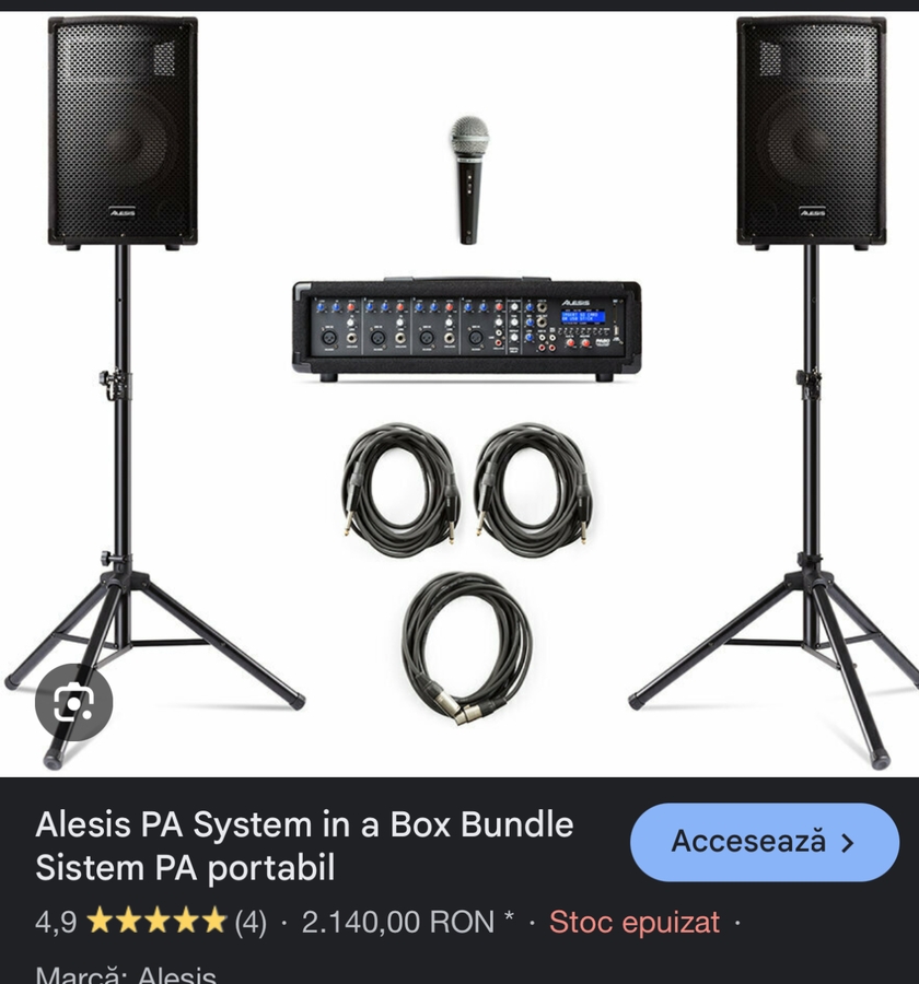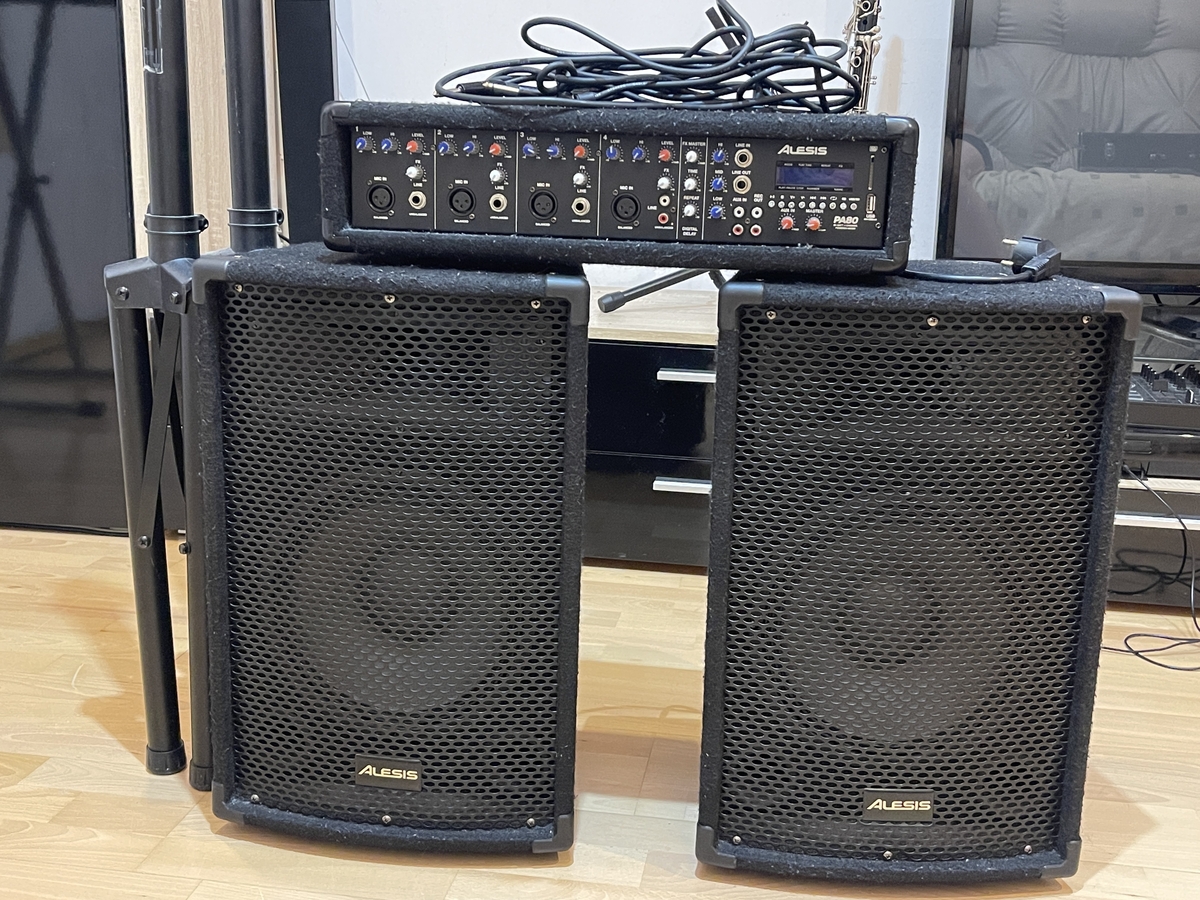 Vand sistem Alesis 240 w, Rms power 80 w-4Q, include doua boxe +amplificator+doua stative+cabluri.