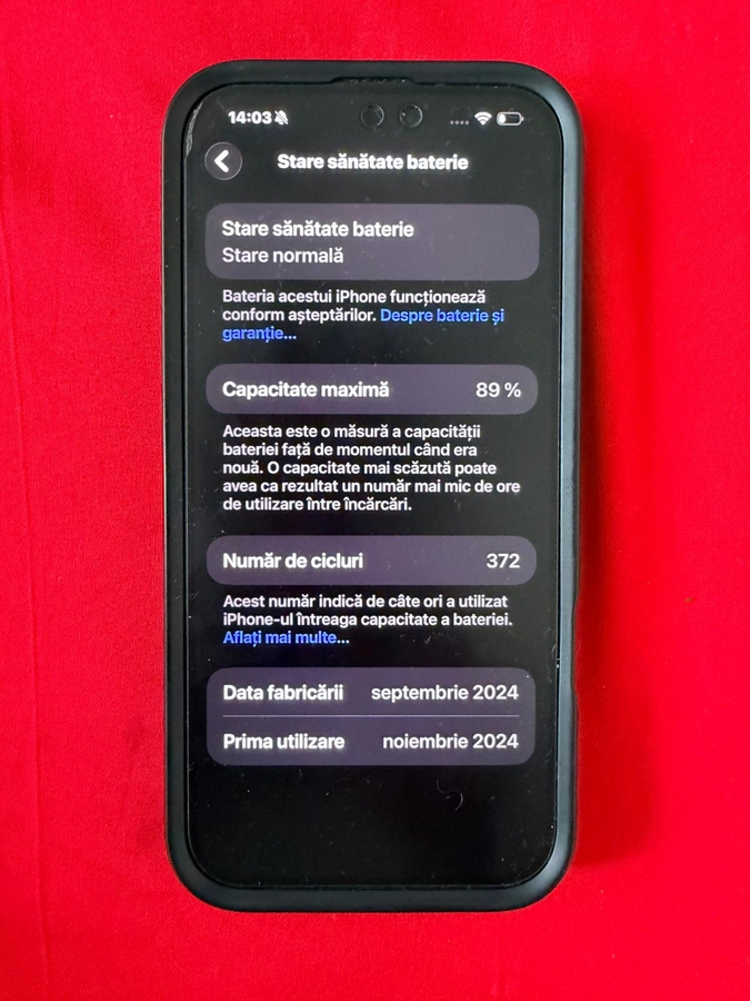 🔋 Sanatate baterie: 89%