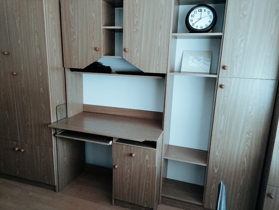 Vand set complet de mobila pentru tineret, realizat din PAL, in stare foarte buna, ideal pentru camera de copil/adolescent sau un dormitor de dimensiuni reduse.