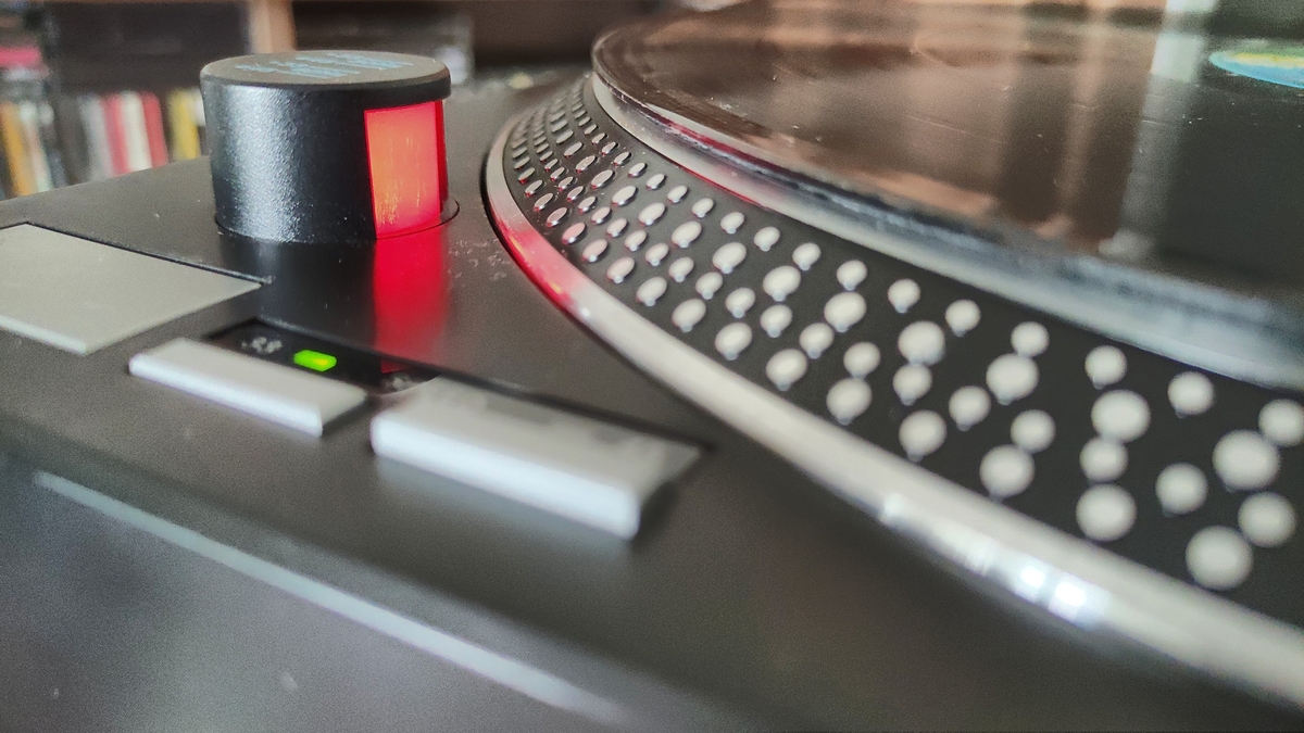 cu pitch control si reglarea vitezei prin stroboscop. Pick-upul este perfect functional, acul in stare buna. Aparatul este o replica dupa faimosul pick-up Technics SL 1200. Greutate 9 kg.