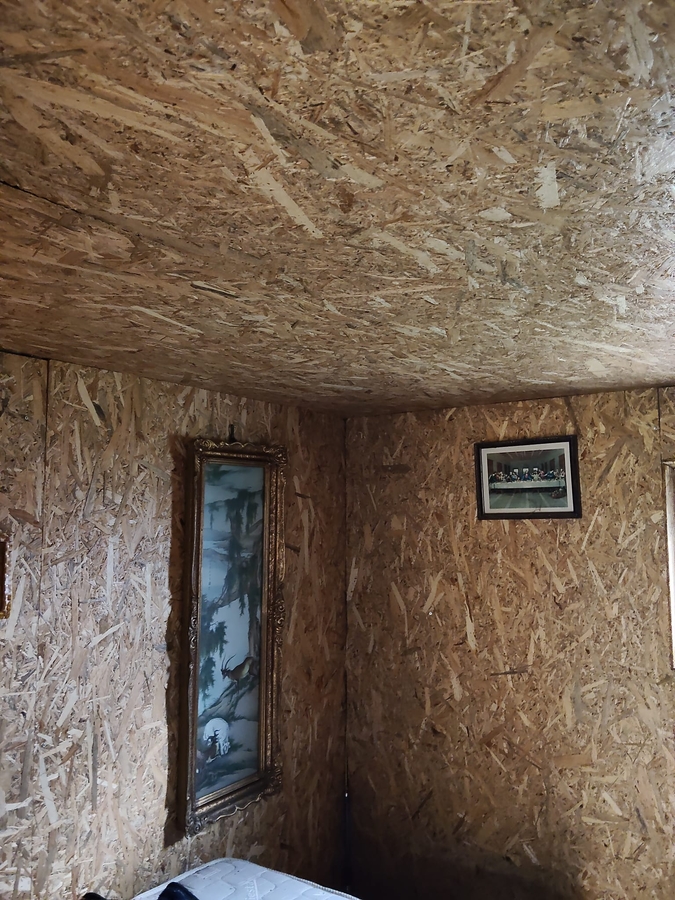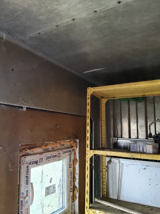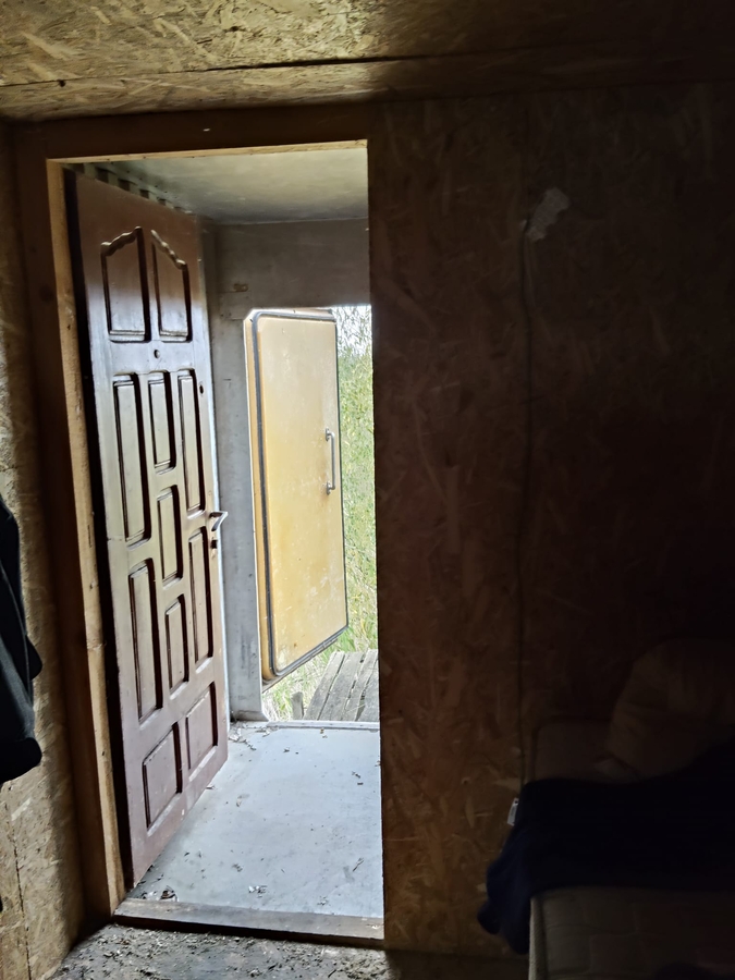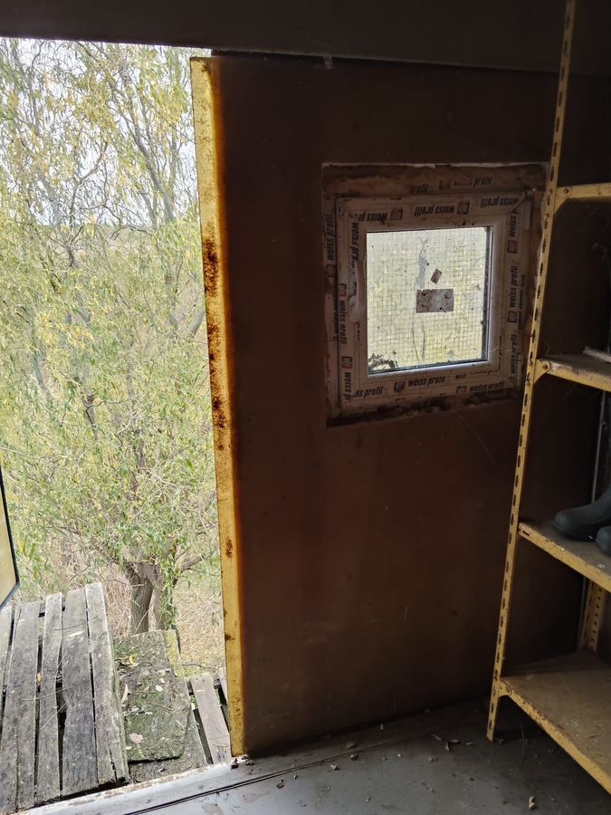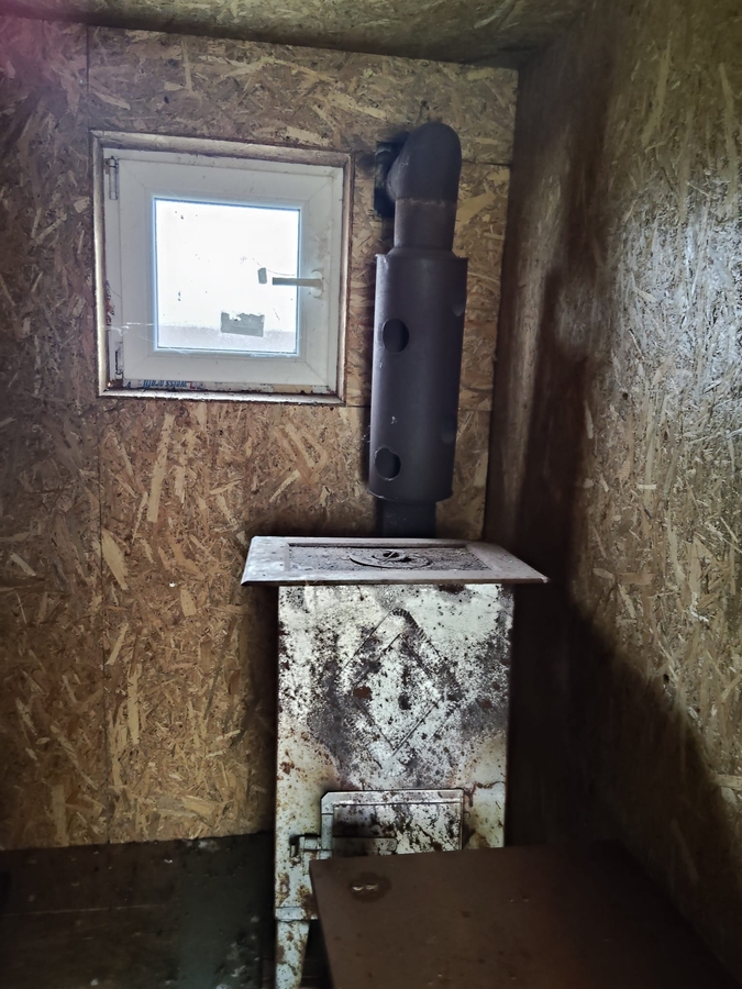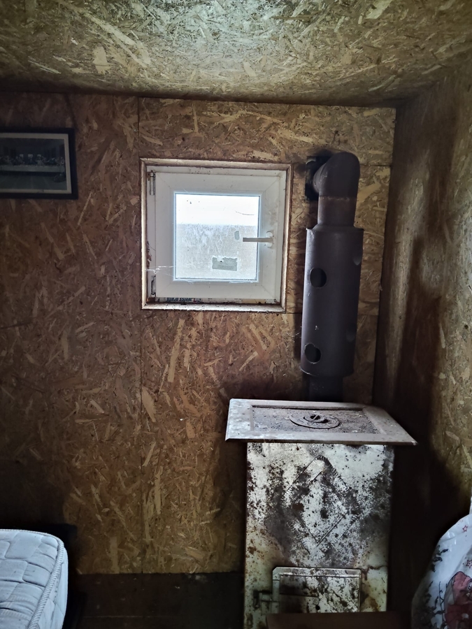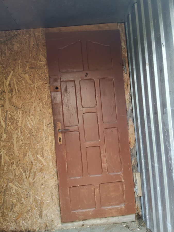 interior aluminiu, dublat cu OSB, intre pereti polistiren de 10cm, podeaua dublata cu OSB si vata minerala, compartimentat o camera cu godin pentru incalzit si un hol la intrare. Locatia la 13 km de Urziceni, pe E85.