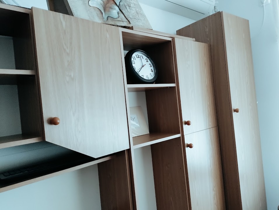 Vand set complet de mobila pentru tineret, realizat din PAL, in stare foarte buna, ideal pentru camera de copil/adolescent sau un dormitor de dimensiuni reduse.