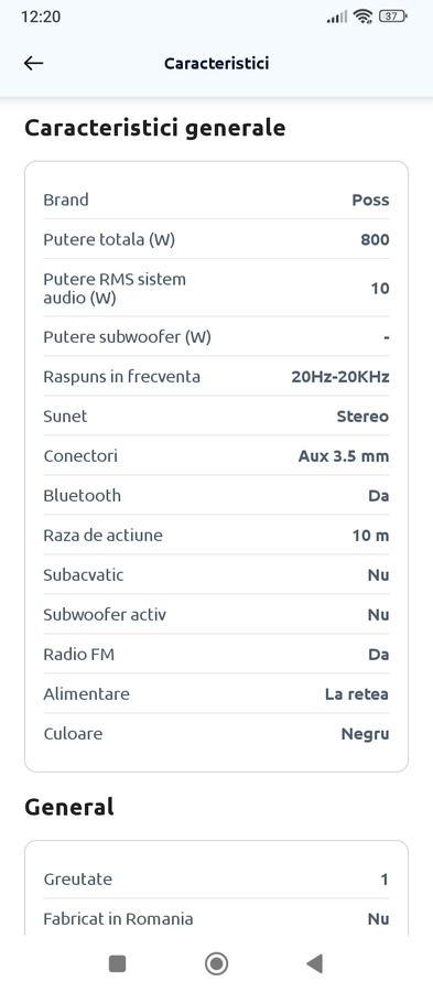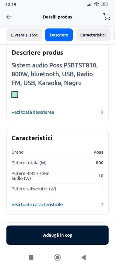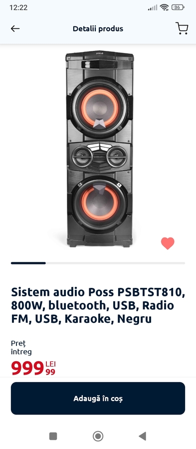 Vand sistem audio Poss PSBTST810 nou cumparat din Carrefour in luna 12/2024 cu garantie 3 ani, stare impecabila fara nicio zgarietura, se vinde cu factura de la Carrefour cu garantie 3 ani se vede in poze, se aude super tare, bass puternic, alimentare la retea, mai multe detalii de boxa in poze uitativa va rog, se vinde in cutia originala, neg.