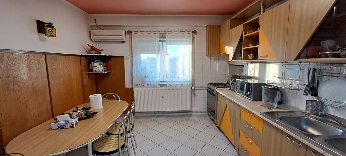 Imobilul este un bloc edificat in anul 1986, reabilitat, iar apartamentul se afla la etajul 8 din 8, terasa de deasupra fiind renovata, izolata termic si fonic. Apartamentul dispune de 61 mp impartiti in living, dormitor, bucatarie, baie, hol acces si balcon.