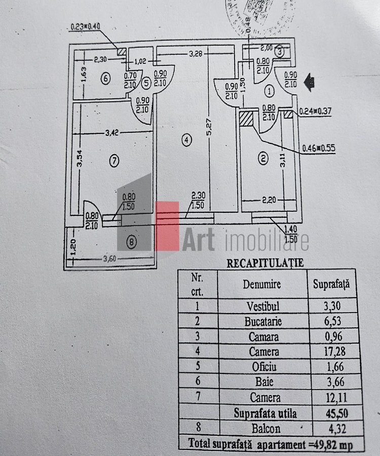 apartament cu doua camere de vanzare, semidecomandat, situat la intersectia dintre 1 Decembrie 1918 si Titan, la 10 metri de gura de metrou 1 Decembrie 1918, la etajul 6 din 10, cu balcon inchis si bucatarie inchisa. Este renovat recent (usi, gresie si faianta, instalatie sanitara, bucataria), aer conditionat. Bloc reabilitat, din 1975. Cheltuielile la intretinere sunt foarte mici (se poate verifica). Se poate vinde mobilat sau nemobilat. Actele sunt in regula si pregatite pentru noul proprietar.