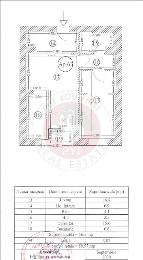 Suprafata utila: 56.5 mp
