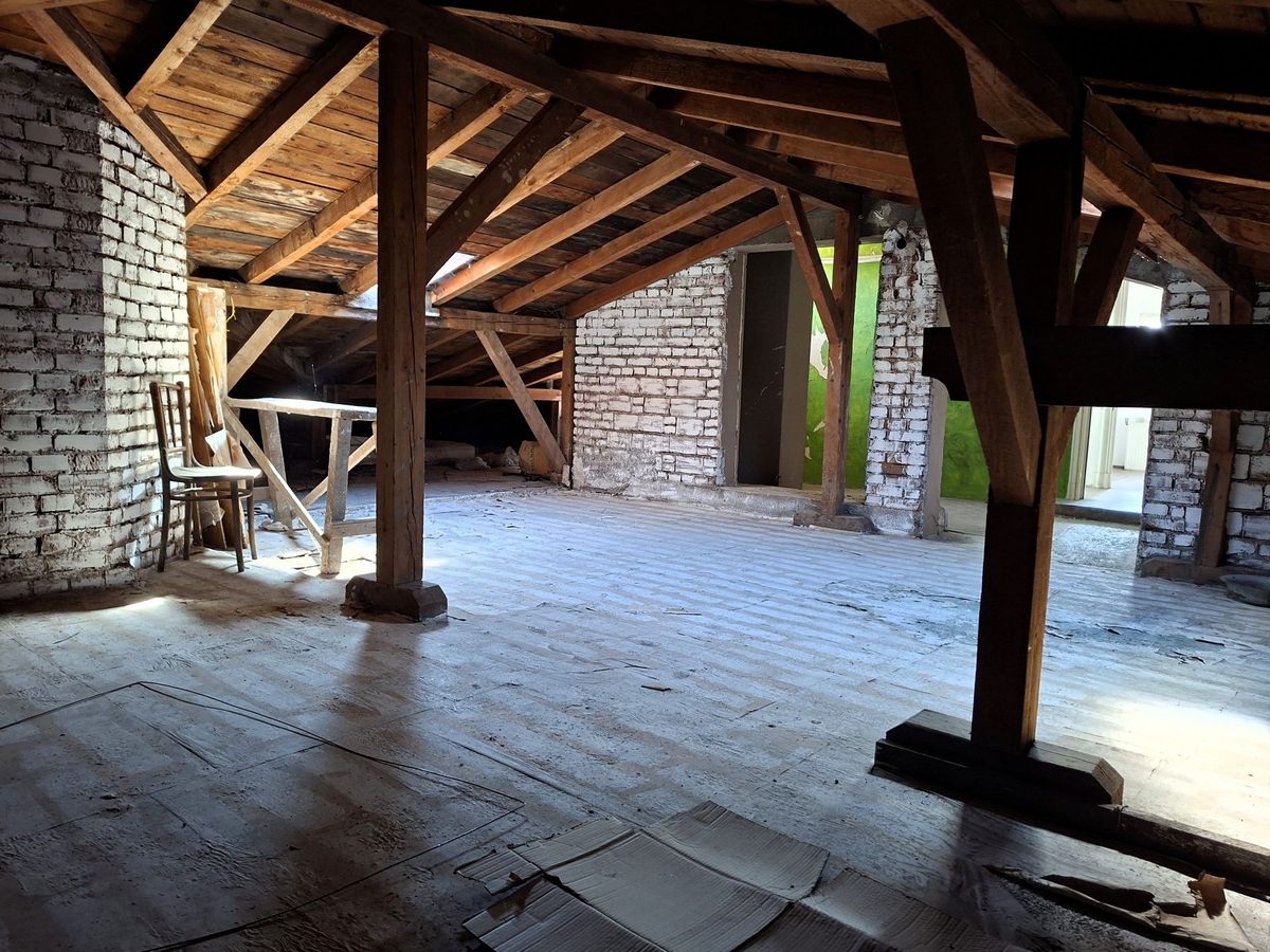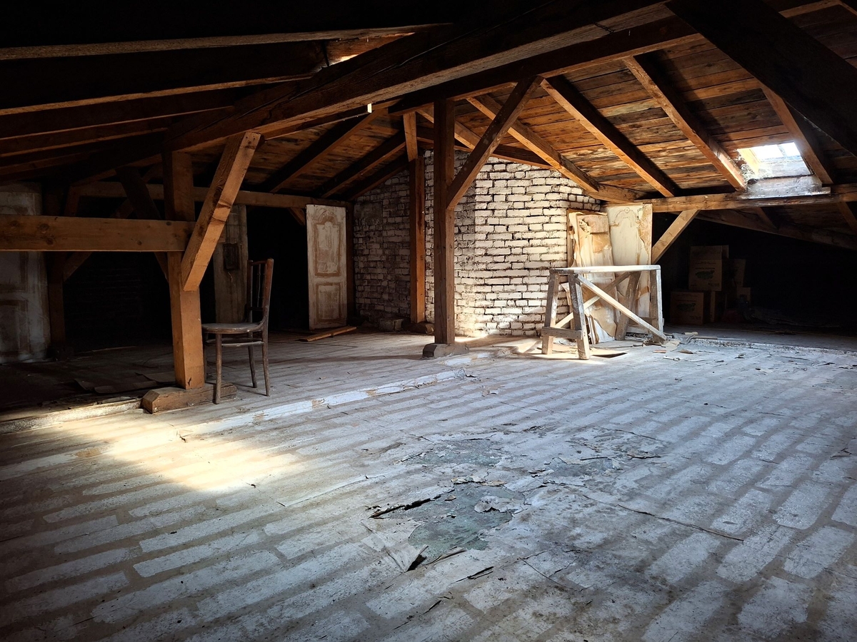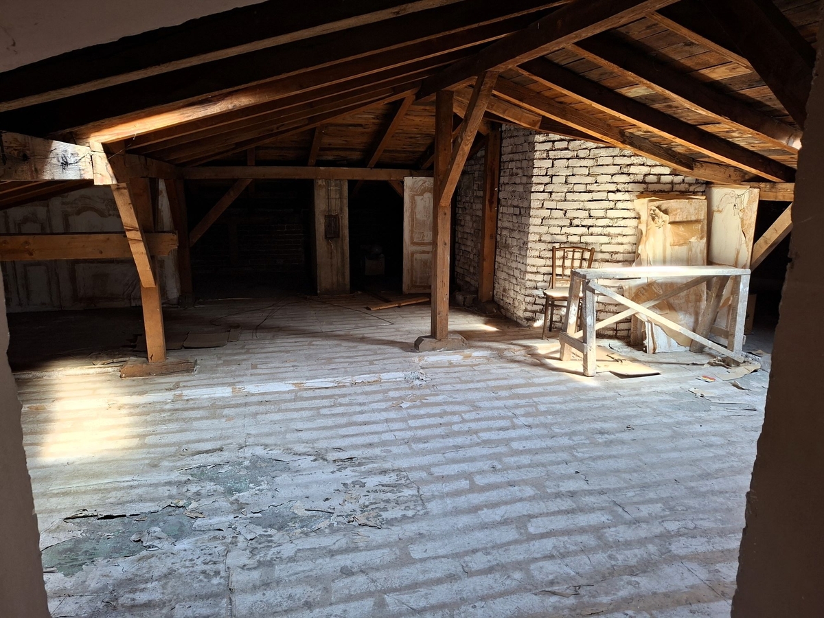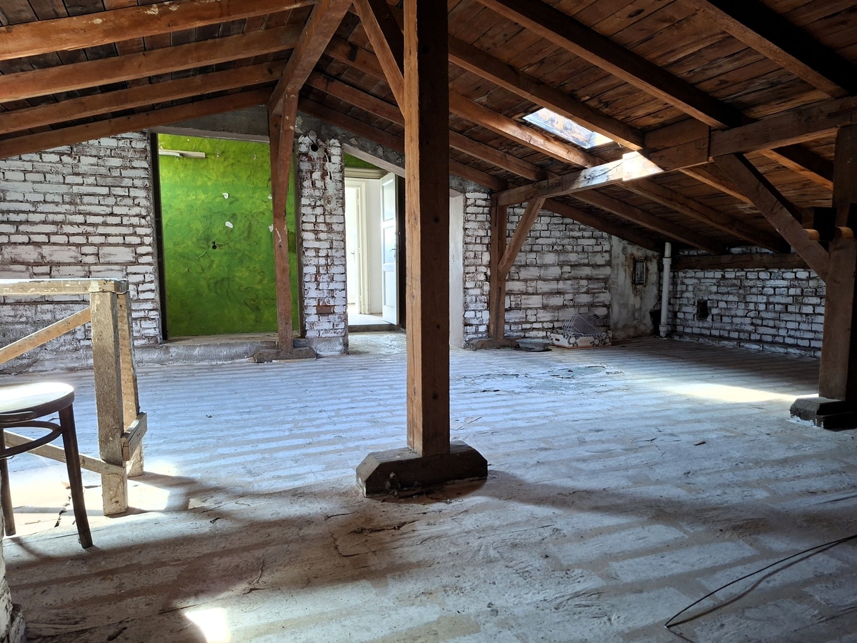 Accesul catre proprietate se face pe scara de serviciu a vilei. Proprietatea este formata din 2 camere la mansarda cu suprafata de 19 mp si un pod cu suprafata de 166 mp aflate la acelasi nivel. Din suprafata podului in aproximativ 50 - 60 mp se poate sta in picioare. Are potentialul de a fi transformata intr-o mansarda boema.