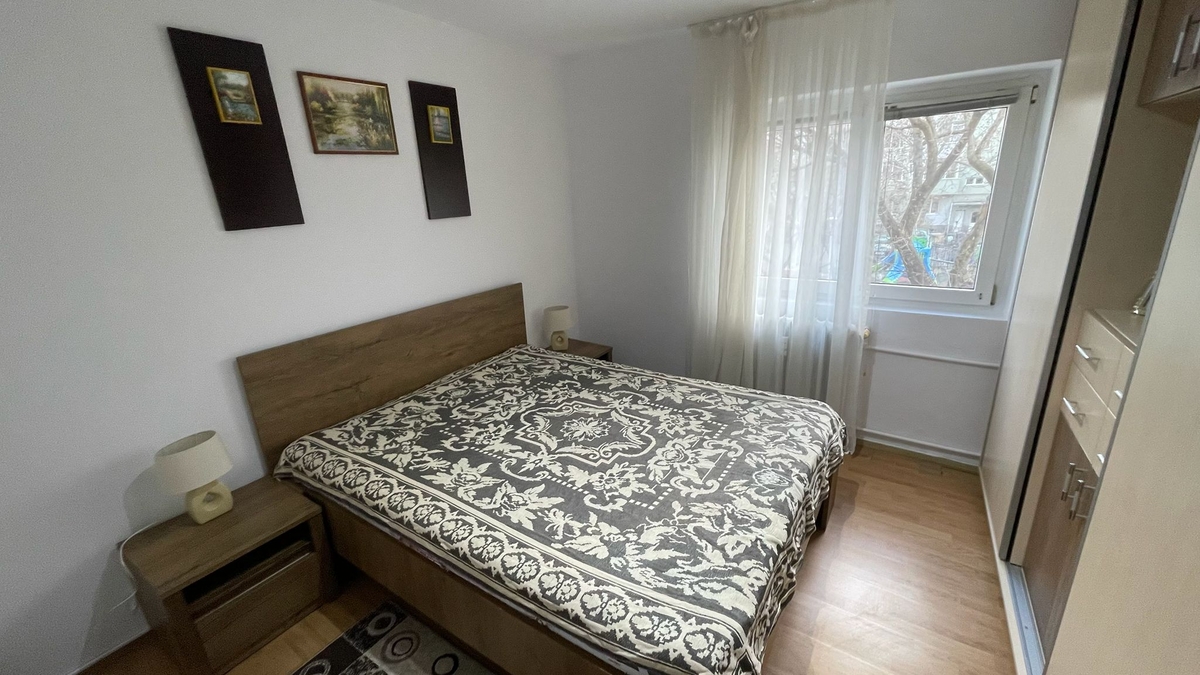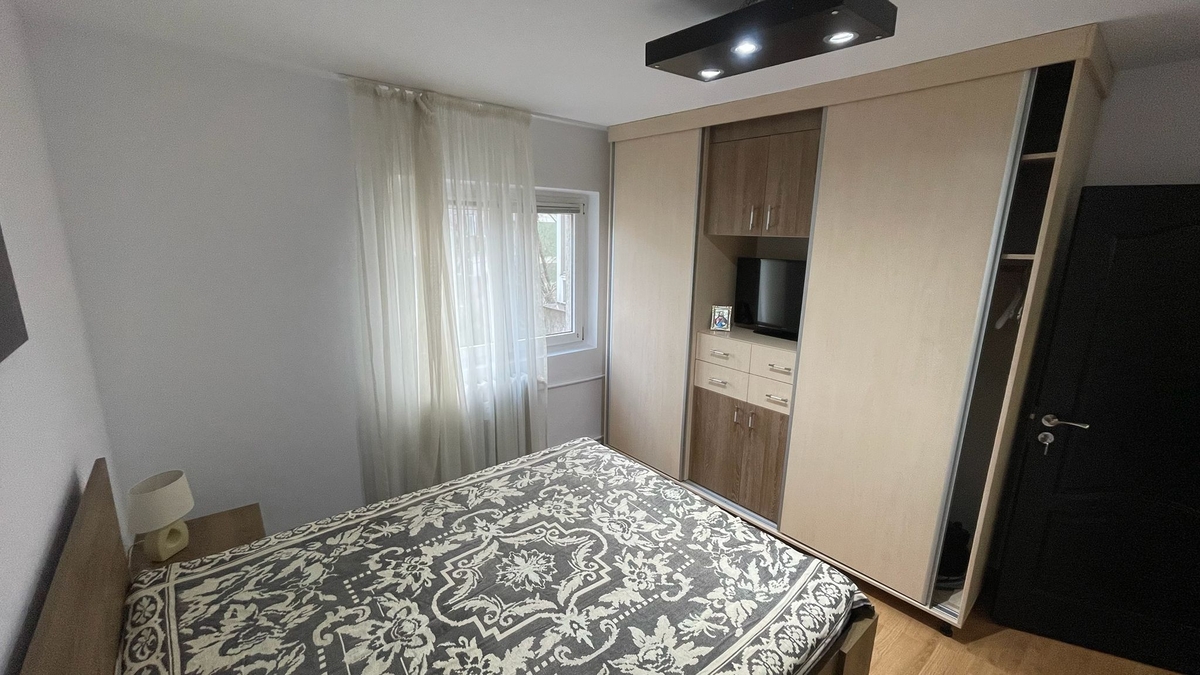etajul 1/4, decomandat, bloc 1984, 52 mp, renovat total, instalatii electrice si sanitare schimbate, se vinde mobilat si utilat complet, aer conditionat, balcon, proaspat zugravit, la 2 min. de parc si de Lacul Morii, zona linistita, bloc curat si civilizat, acte, accepta credit.