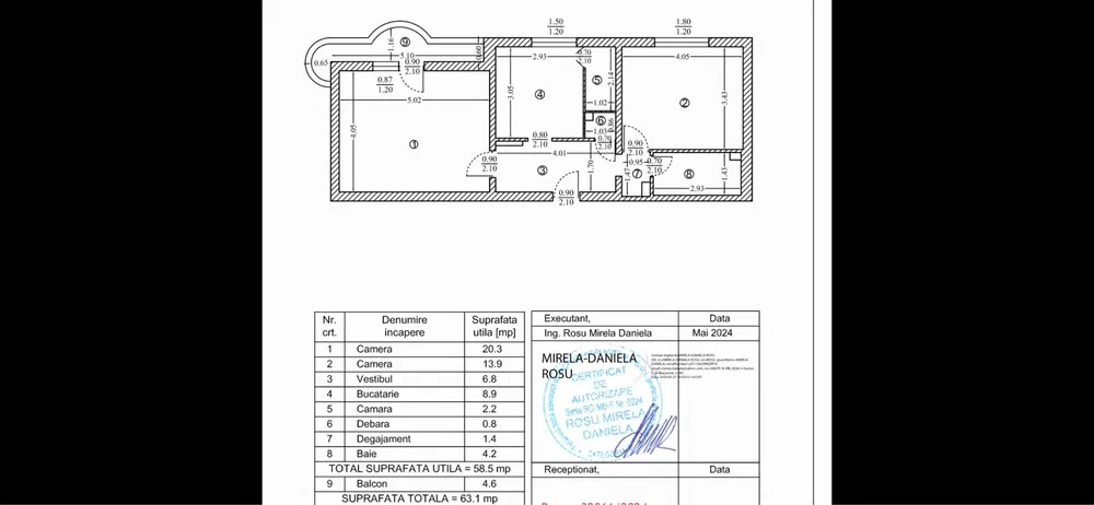 Suprafata utila: 63 mp, oferind suficient spatiu pentru un stil de viata confortabil.
