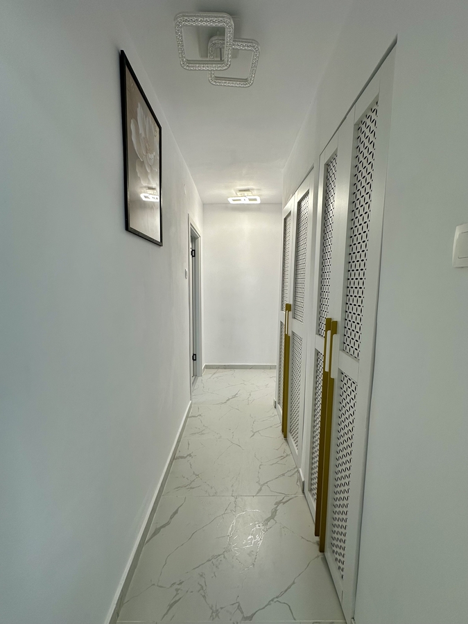 et 6/10, cf. 1, 50 mp, proaspat renovat, totul este nou, instalatii electrice si obiecte sanitare noi, mobila pe comanda, electrocasnice noi si in garantie, bloc semistradal, scara foarte curata si bine intretinuta, blocul dispune de lift, supraveghere video, acces interfon. Din punct de vedere juridic toate actele sunt pregatite pt vanzare. Imobilul se vinde exact ca in poze, acesta nu a fost locuit dupa amenajare.