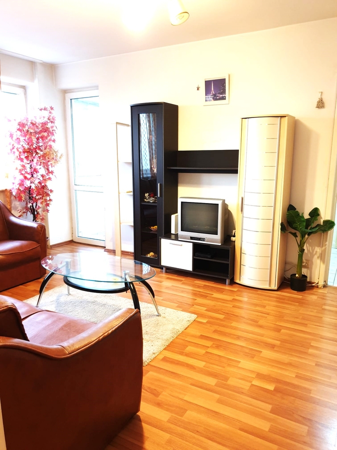 Sibiu, ap. cu 2 camere la et. 7/9, confort 1 semidec., renovat, termopan, usa metalica, parchet clasic masiv, mobilat si utilat, balcon terasa generos, geam la baie, bloc curat, civilizat, zona buna, acces usor metrou, stb, Afi Cotroceni, acte facute, pret usor negociabil, liber,