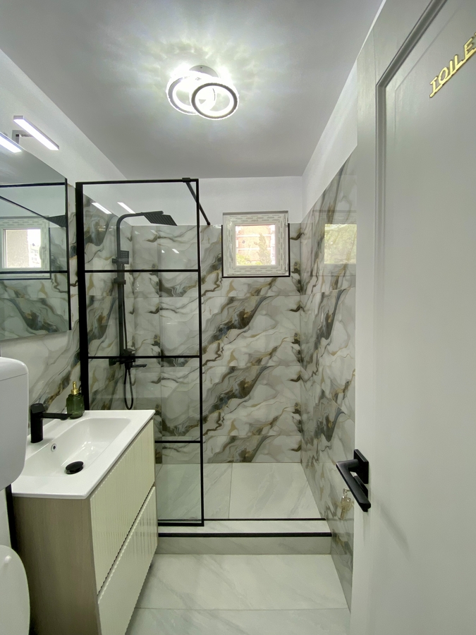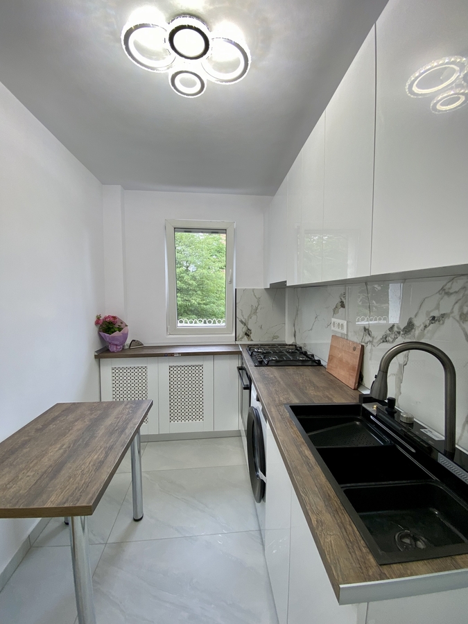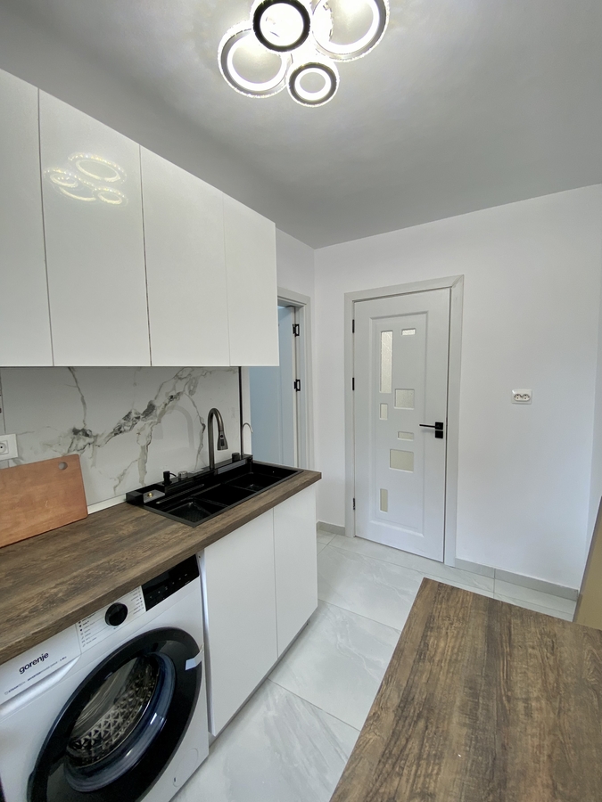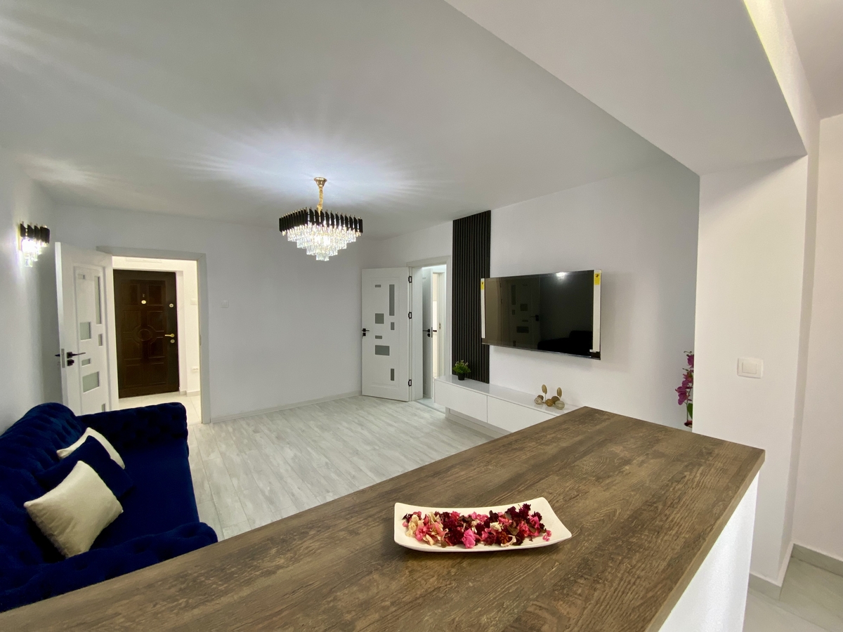 et 3/10, cf. 1, 50 mp, proaspat renovat, totul este nou, instalatii si obiecte sanitare noi, mobila pe comanda, electrocasnice noi si in garantie, bloc semistradal, scara foarte curata si bine intretinuta, blocul dispune de lift, supraveghere video, acces interfon. Din punct de vedere juridic toate actele sunt pregatite pt vanzare. Imobilul se vinde exact ca in poze, acesta nu a fost locuit dupa amenajare.
