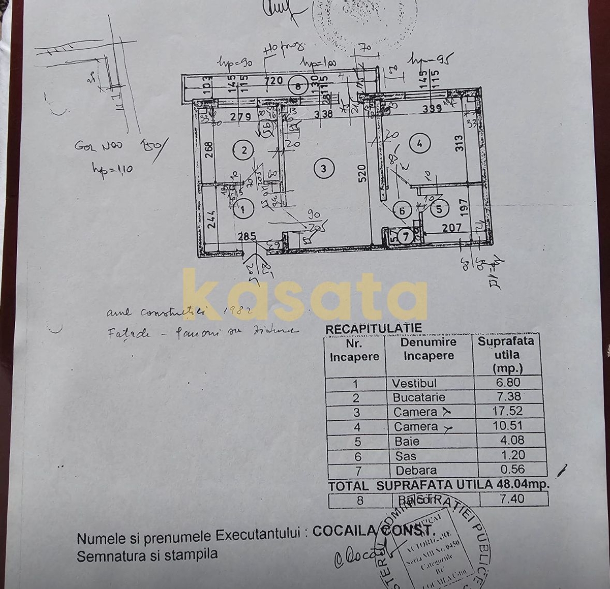 Imobilul este amplasat la etajul 1 al unui bloc construit in 1982, bloc anvelopat termic, oferind un bun confort termic si costuri reduse de intretinere. Apartamentul a fost renovat complet, este mobilat si utilat modern, fiind pregatit pentru mutare imediata, fara investitii suplimentare.