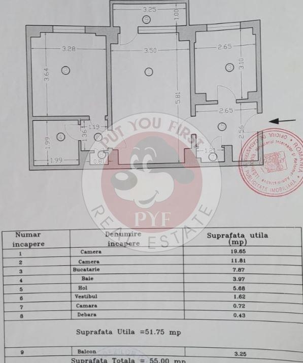 Suprafata totala: 55 mp