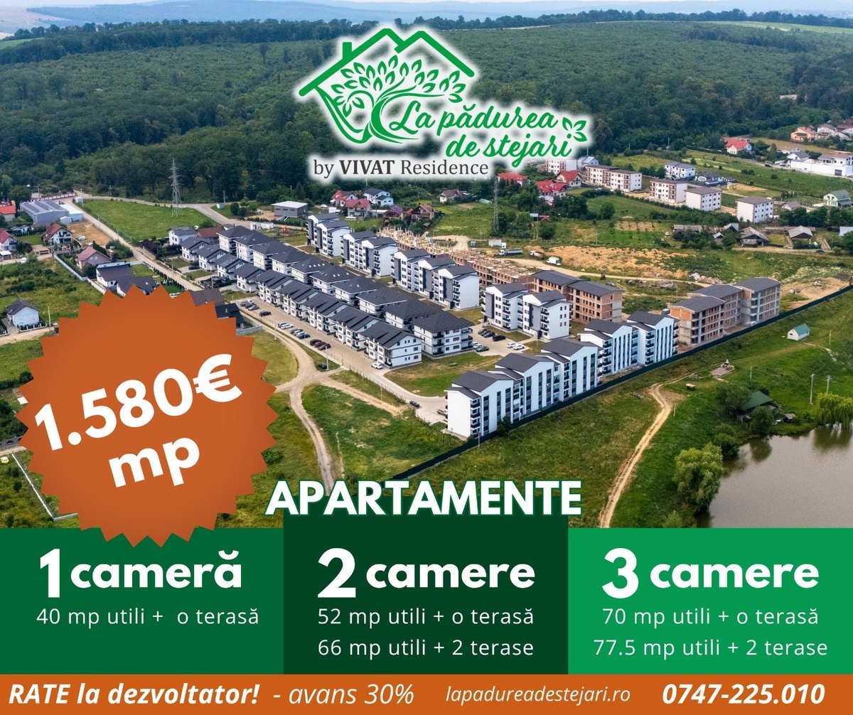 Apartament 2 camere; Suprafata utila: 52 mp; 1 terasa/ 1 loc de parcare in Cartierul La Padurea de Stejari Suceava.