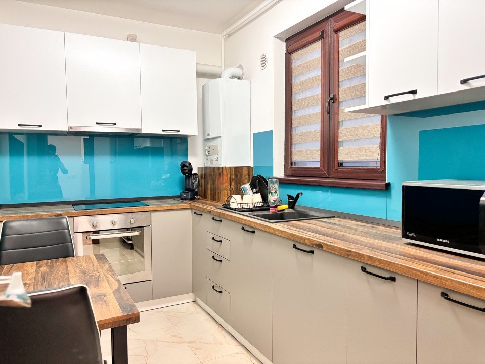 -Bucatarie complet mobilata si utilata (aragaz, hota, frigider, masina de spalat rufe, masina de spalat vase, plita electrica)