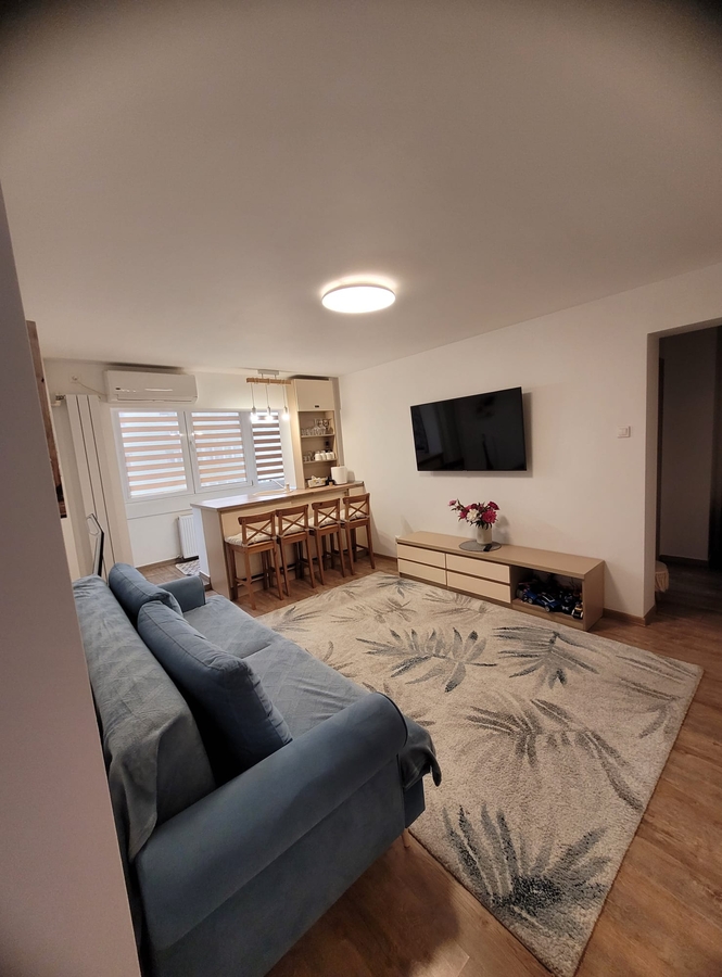 Apartamentul are o suprafata utila de 56 mp si a fost complet renovat recent, inclusiv instalatiile electrice si sanitare, fiind pregatit pentru mutare imediata.