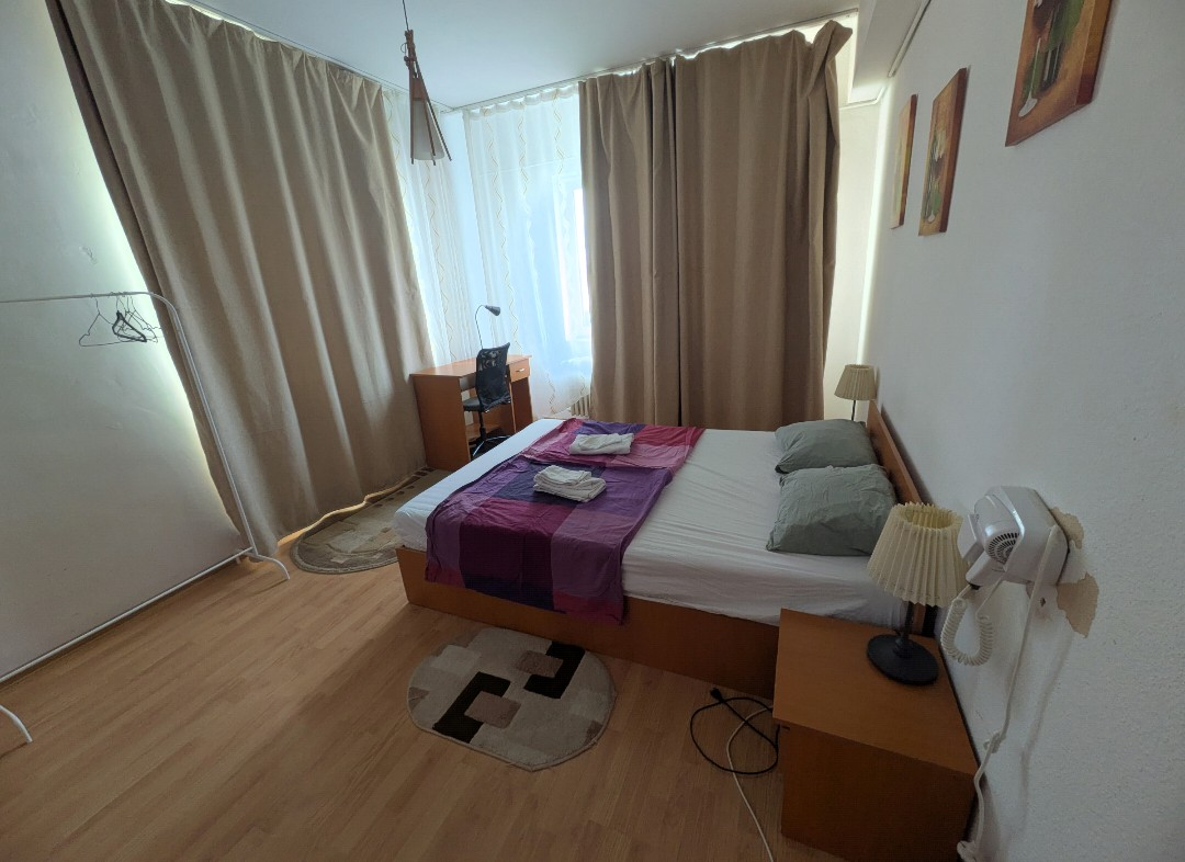 chiar in sensul giratoriu. Proprietar, vand apartament 2 camere, semidecomandat, 44mp, etaj 9/10. Ultra modern, renovat, mobilat complet, luminos. Este inchiriat AirBnb. Dotari: aer conditionat, incalzire masina de spalat, gresie, faianta, parchet, vedere spate, liniste, parc si verdeata. Metrou si statie RATB la scara, ultra central, excelent pentru AirBnb (peste jumate din scara sunt AirBnb), studenti sau investitie. Risc seismic 1 (coloanele trebuie consolidate). Liber, accept agentii.