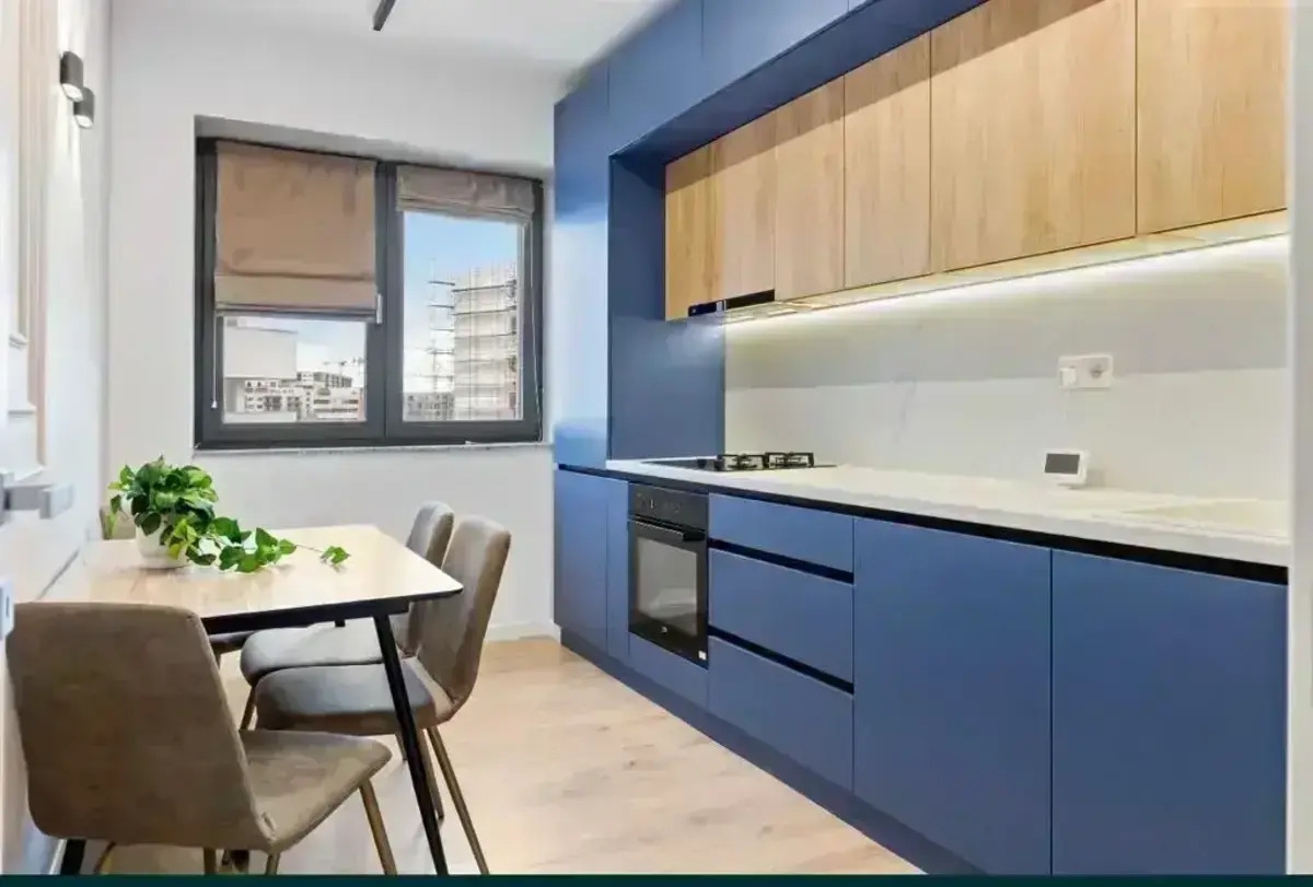 2.Bucatarie inchisa – ofera intimitate, ventilatie eficienta si delimiteaza clar zona de gatit