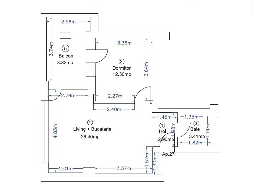 - Balcon extrem de spatios cu o suprafata de 8.82 mp