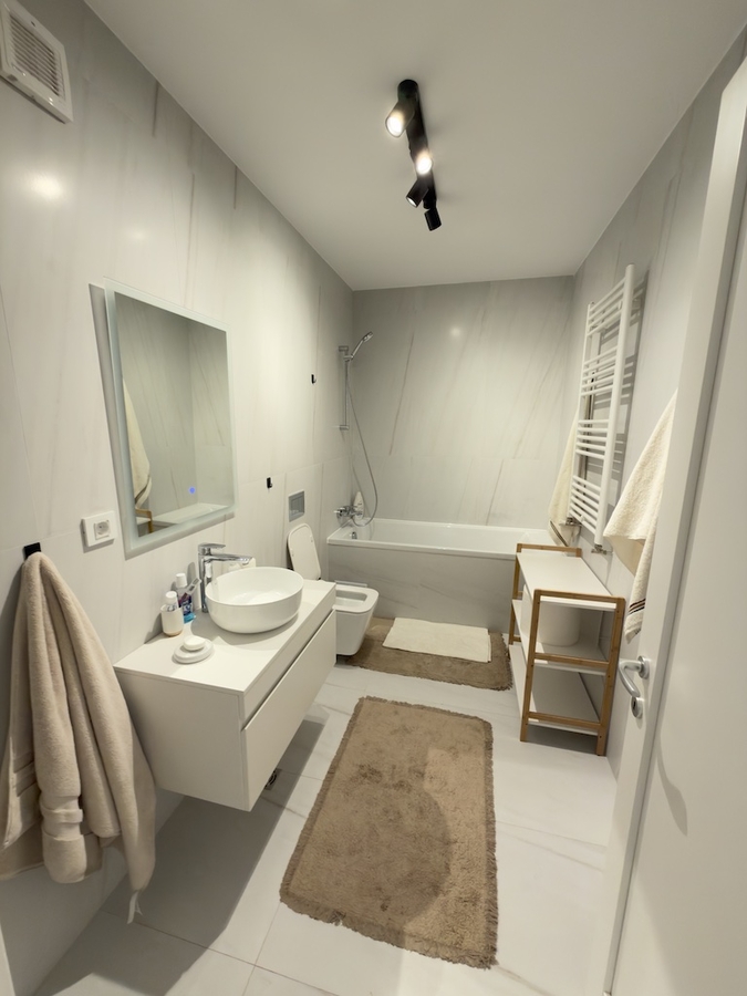 apartament cu 2 camere, 2 bai, etaj 1/5, decomandat, 74 mp, imobil 2023, locuit integral, loc de parcare suprateran in incinta, 2 lifturi, finisaje premium, sistem de climatizare Daikin. Este chiar langa Altex Mall si Pipera Plaza, pe Sos. Bucuresti Nord, retras putin. Cel mai elegant bloc din zona.