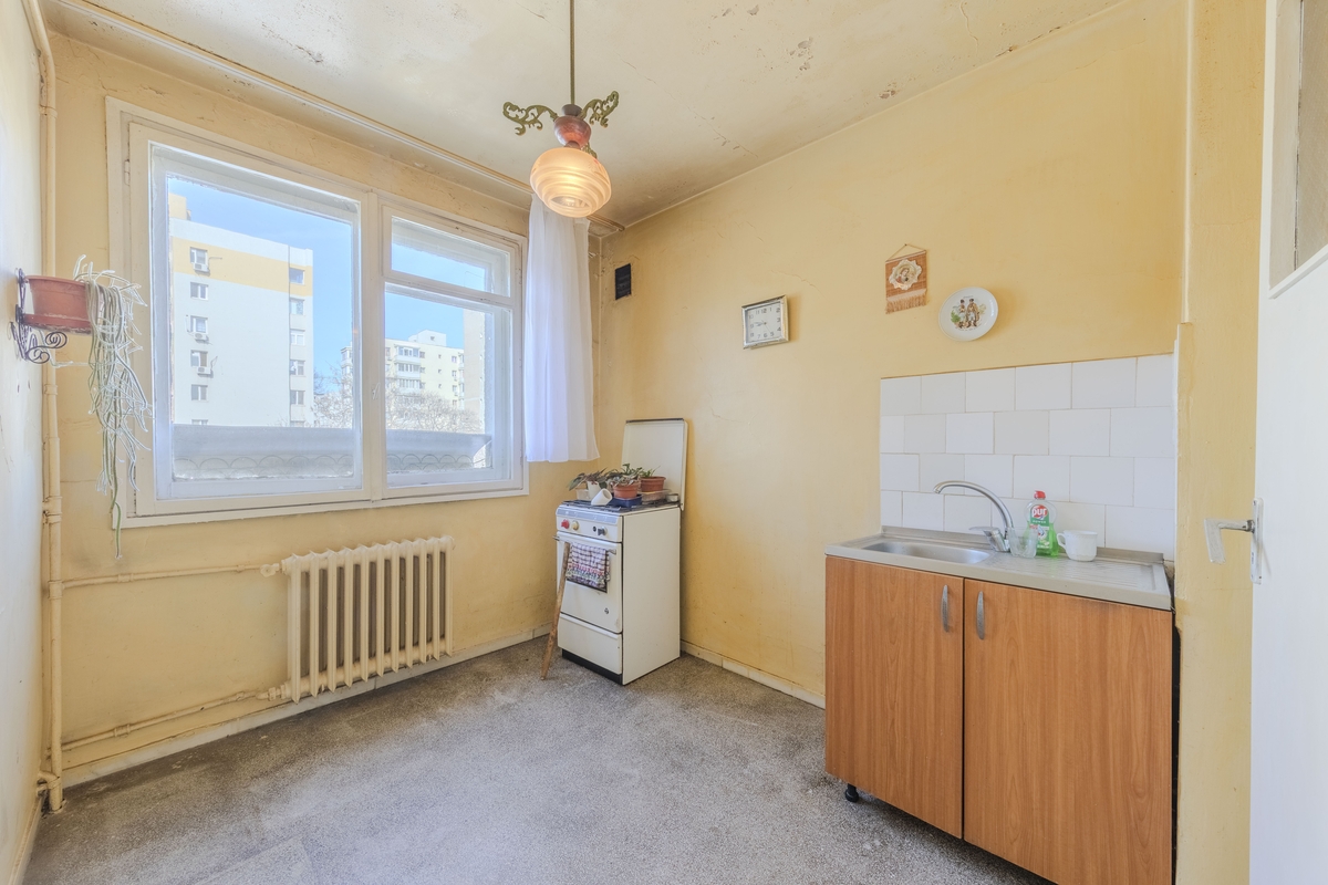 Locuinta (46 mp utili +balcon = 50 mp, semidecomandat) se vinde nerenovata. Nu plati 10.000 - 15.000 € in plus pe finisajele „obosite” ale altcuiva! Ai libertatea de a crea spatiul de la zero, la standardele tale.