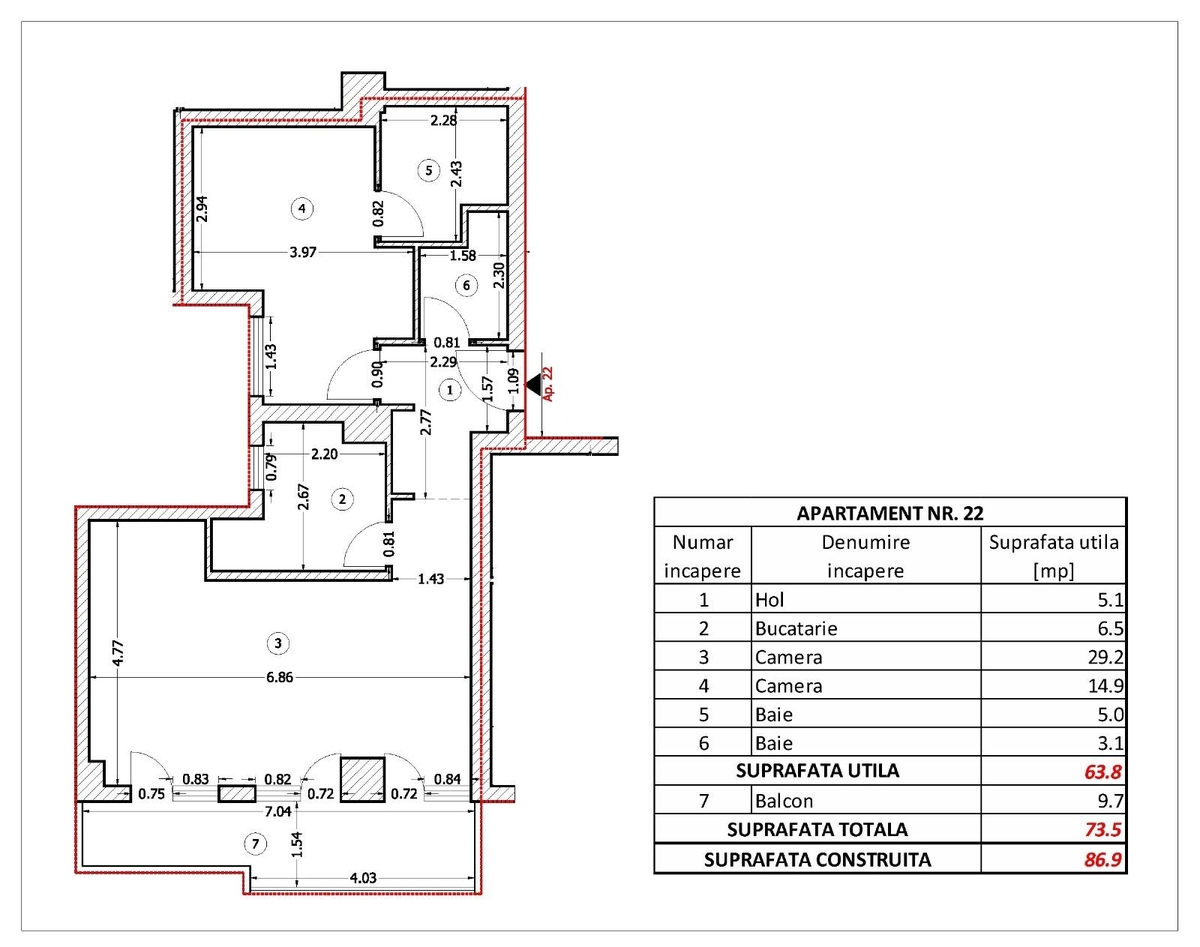 Suprafata totala: 73,5 mp (inclusiv terasa)
