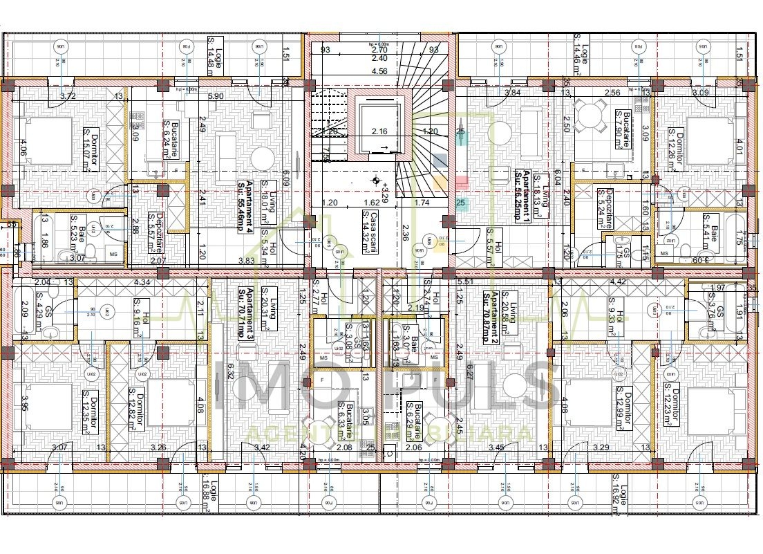 3 camere, 70.71 mp utili + 16,88 mp tersa, 2 bai, disponibil la Et. 1, Et. 2 si Et. 3 – 145.200 Euro;