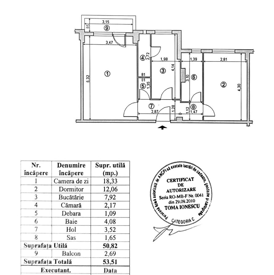- Suprafata 53 mp