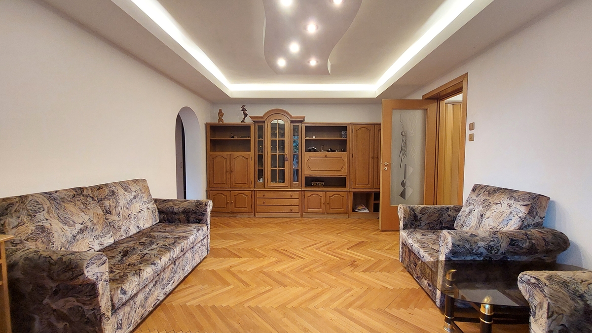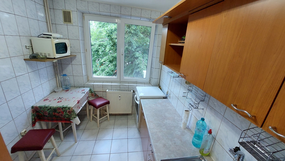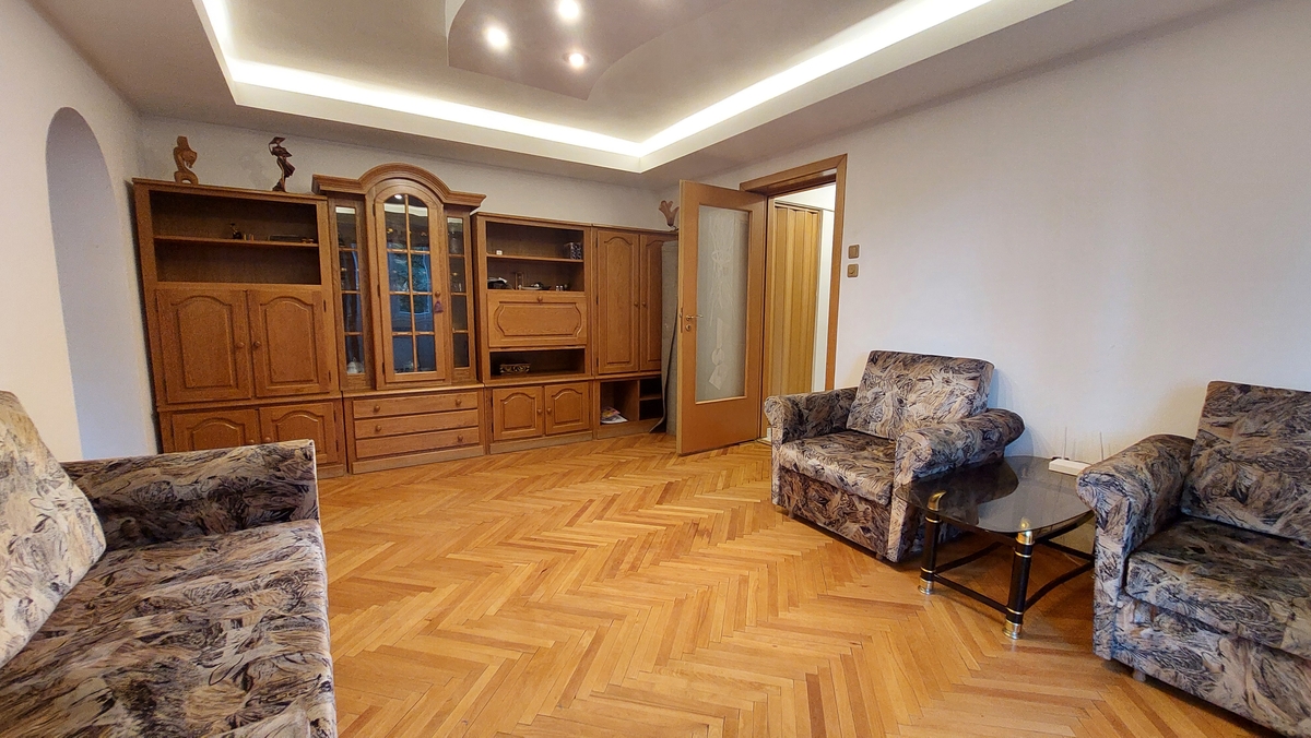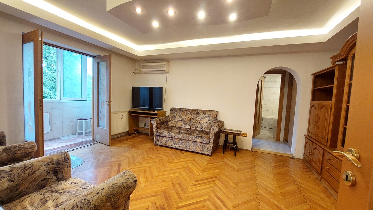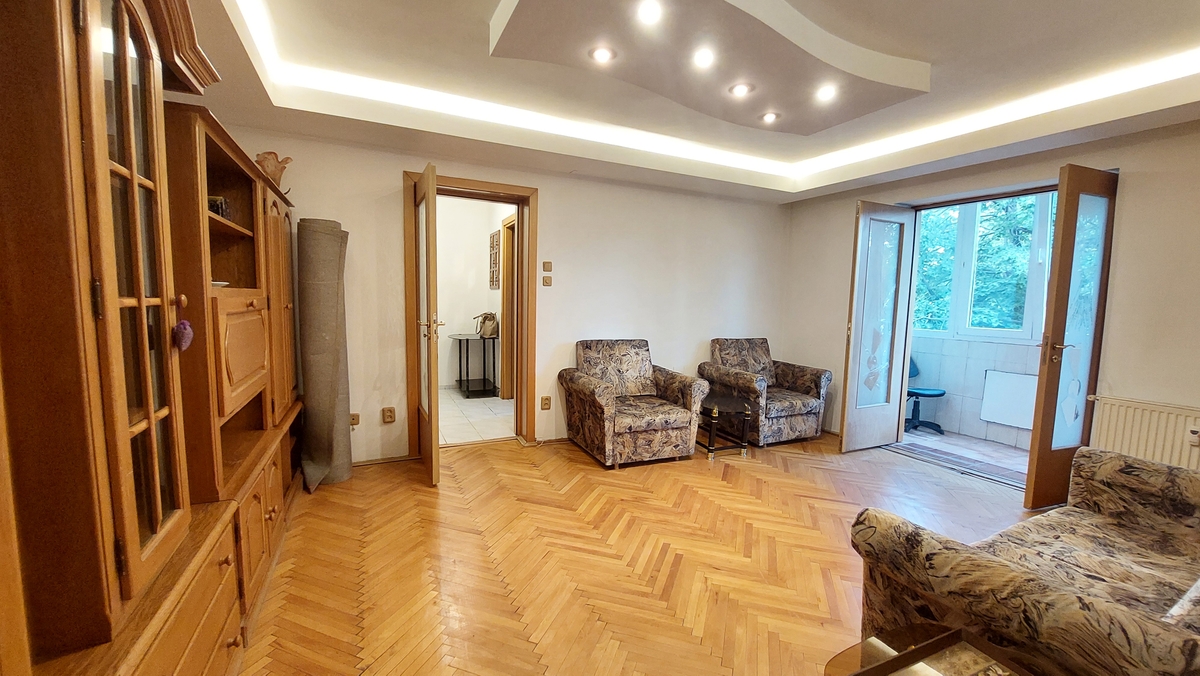 Apartament curat, situat la etajul 3/4, pozitionat pe mijlocul blocului si cu toate ferestrele pe Sud, confort 1 semidecomandat, cu o suprafata totala de 49,9mp si suprafata utila de 45,9mp. Apartamentul a fost renovat integral in 2005, are usi interioare schimbate, parchet stejar in camere, ferestre termopan, usa metalica Maco la intrare, este liber, nelocuit si se vinde cu toate bunurile existente asa cum se vede in fotografii.