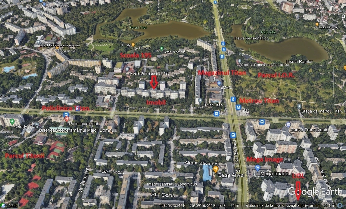 Bulevardul Nicolae Grigorescu, langa statia de Metrou Titan, 2 camere, etajul 4 din 10, confort 1/semidecomandat, suprafata utila totala 62 mp, bloc anvelopat, retras de la bulevard, termopan, parchet, gresie, faianta, aer conditionat, bucatarie foarte spatioasa (dining room 14mp), balcon mare, instalatie electrica schimbata, cada hidromasaj, geam la baie, orientare rasarit, loc de parcare privat in fata blocului, zona verde si locatari civilizati, la numai 3 minute de Metrou Titan sau statiile STB, Parcurile IOR si Titanii, Scoala 195 si Policlinica Titan, adiacent Galeriile Titan, Mega Image, LIDL, Auchan, Colegiu AL.I.Cuza, Gradinita, Cresa. Constructie 1968, fara risc seismic.