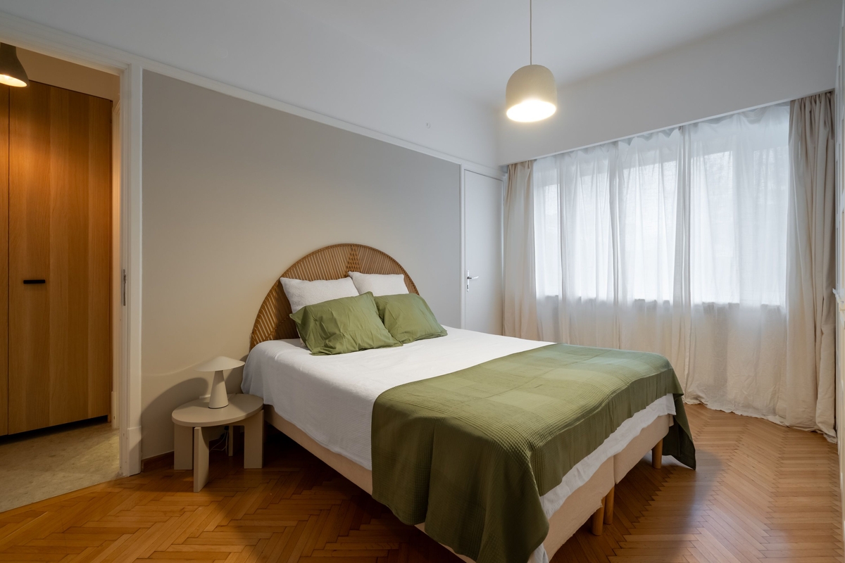 Suprafata utila de 59,52 mp este completata de doua balcoane insumand 7,47 mp, ideal pentru momente de relaxare si o boxa de 4 mp, pentru depozitare. Renovarea realizata anul trecut, sub indrumarea unui arhitect de interior, a pastrat elementele originale – parchetul si usile din lemn reconditionate – dar a adus un aer proaspat si elegant prin finisaje moderne.