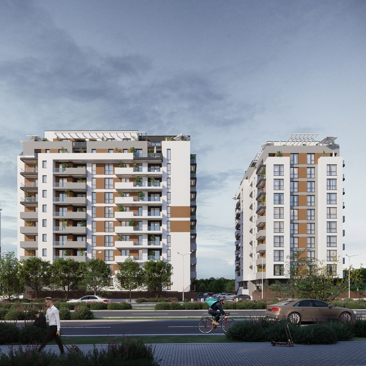 Cladirile de locuinte au un regim de inaltime de D+P+8E+ 9,10E duplex, in componenta lor regasindu-se garsoniere, apartamente cu 2 sau 3 camere si duplexuri cu 2/4 camere la etajele 9 si 10.