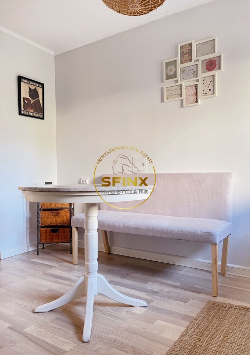 Este proaspat zugravit, mobilat modern, dotat cu electrocasnice, dispune de centrala proprie pe gaz si aer conditionat. Se vinde mobilat si utilat.