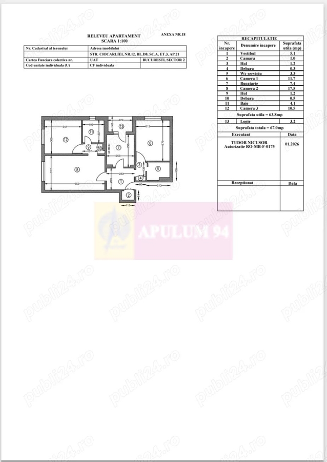 Agentia Imobiliara Apulum 94, va prezinta spre vanzare un apartament cu 3 camere, semidecomandat, situat la etaj intermediar,3 \8 cu vedere spre lac,are 67 mp utili, 2 bai cu cada si bucatarie separata.