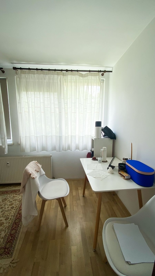 Compartimentarea este eficienta, iar proprietatea dispune de doua grupuri sanitare, dintre care unul cu geam, un avantaj important pentru confort si ventilatie naturala.