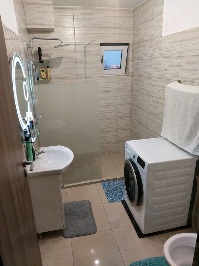 Baie de serviciu cu dus walk-in (baterie Grohe), masina de spalat si uscator rufe