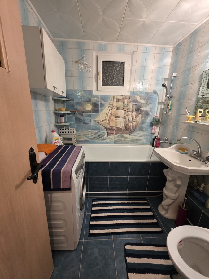 Apartamentul este decomandat, are 2 grupuri sanitare, geam la baie, termopane, gresie si faianta si bucatarie mare.