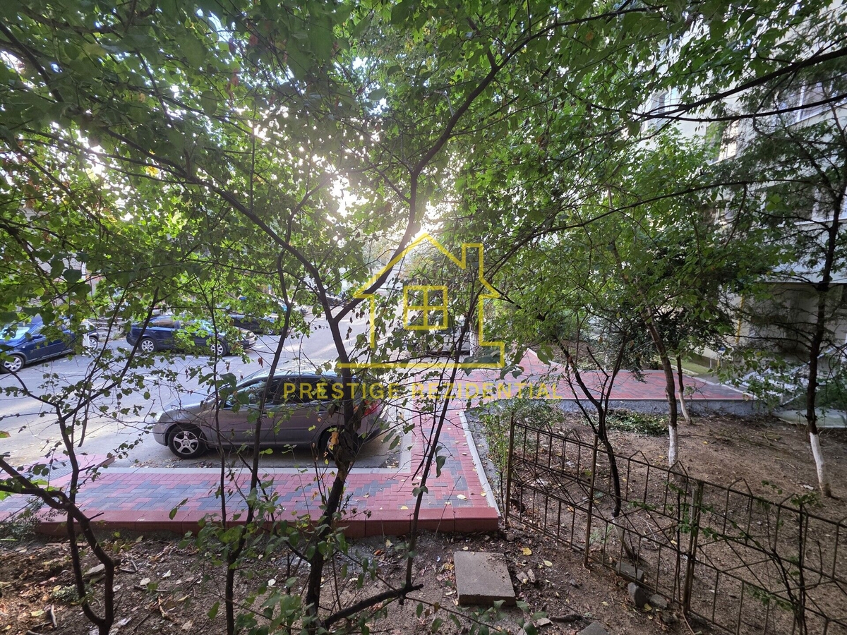 Se afla la parter, are balcon cu vedere la gradina blocului, aer conditionat si baie cu geam.