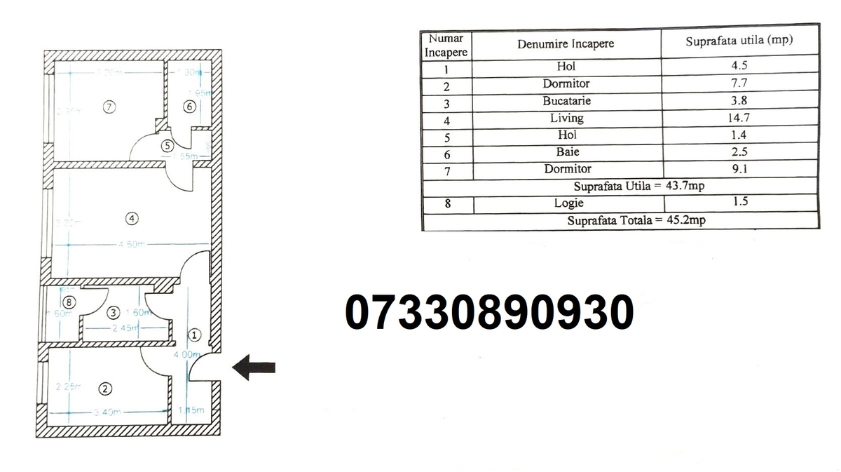 - Suprafata 45 mp