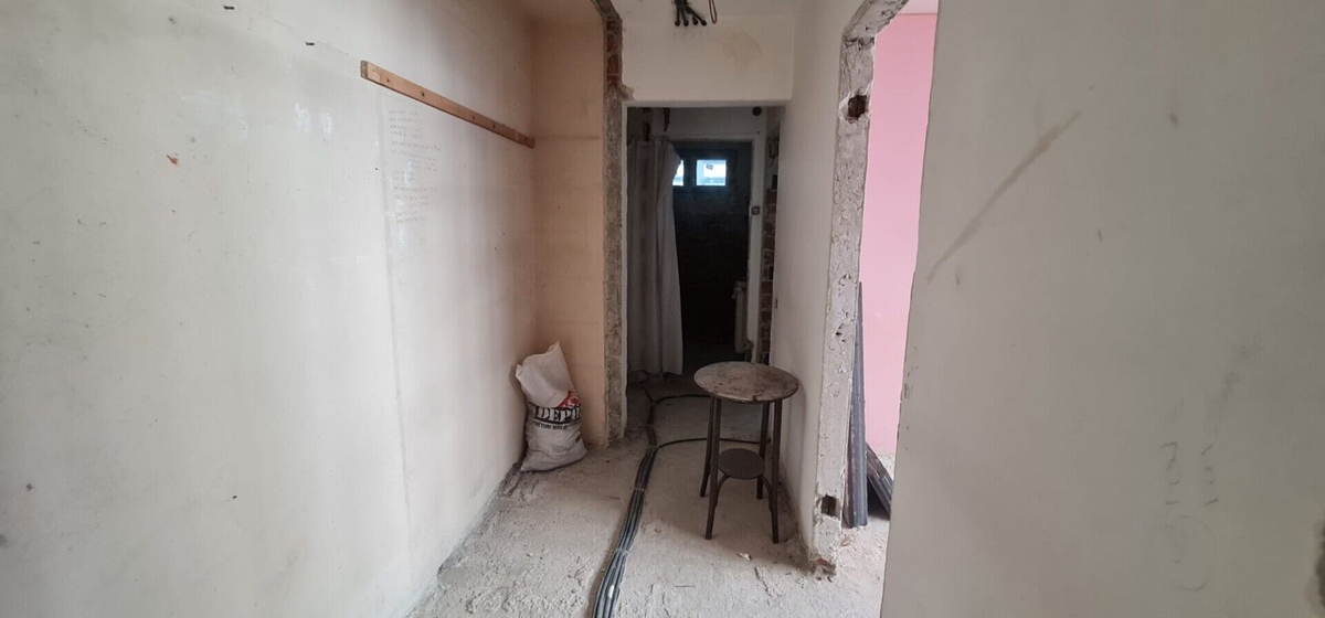 Pentru a putea fi locuit mai necesita o sapa, usi interioare, usa intrare si glet. (surplusul de moloz a fost eliberat deja)