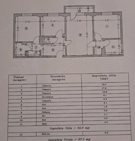 Se vinde un apartament cu 3 camere situat pe Sos Pantelimon stradal in apropriere de biserica Capra, vedere mixta, si la numai 5 min de Mega Mall, statia de metrou Iancului - 15 min, 67 mp total, etaj 9/10, bloc reabilitat termic, an 1979, 2 grupuri sanitare, semi-decomandat, se vinde complet gol, cadastru si intabulare, energetic, pregatite. Pentru vizionari si detalii sunati la