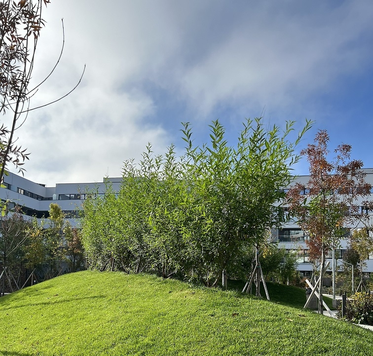 - Zone verzi extinse. S-au plantat tot atatia copaci cate apartamente s-au construit (raport 1:1 copaci-apartamente). Parcuri interioare, locuri de joaca pentru copii, design peisagistic unitar. Alei. Peluze. Piscine exterioare in fiecare faza (ingradite pentru siguranta copiilor). Parcari supraterane. Comunitate activa, majoritatea proprietari, familii tinere. Cai de acces in complex securizate (bariera si paza umana).