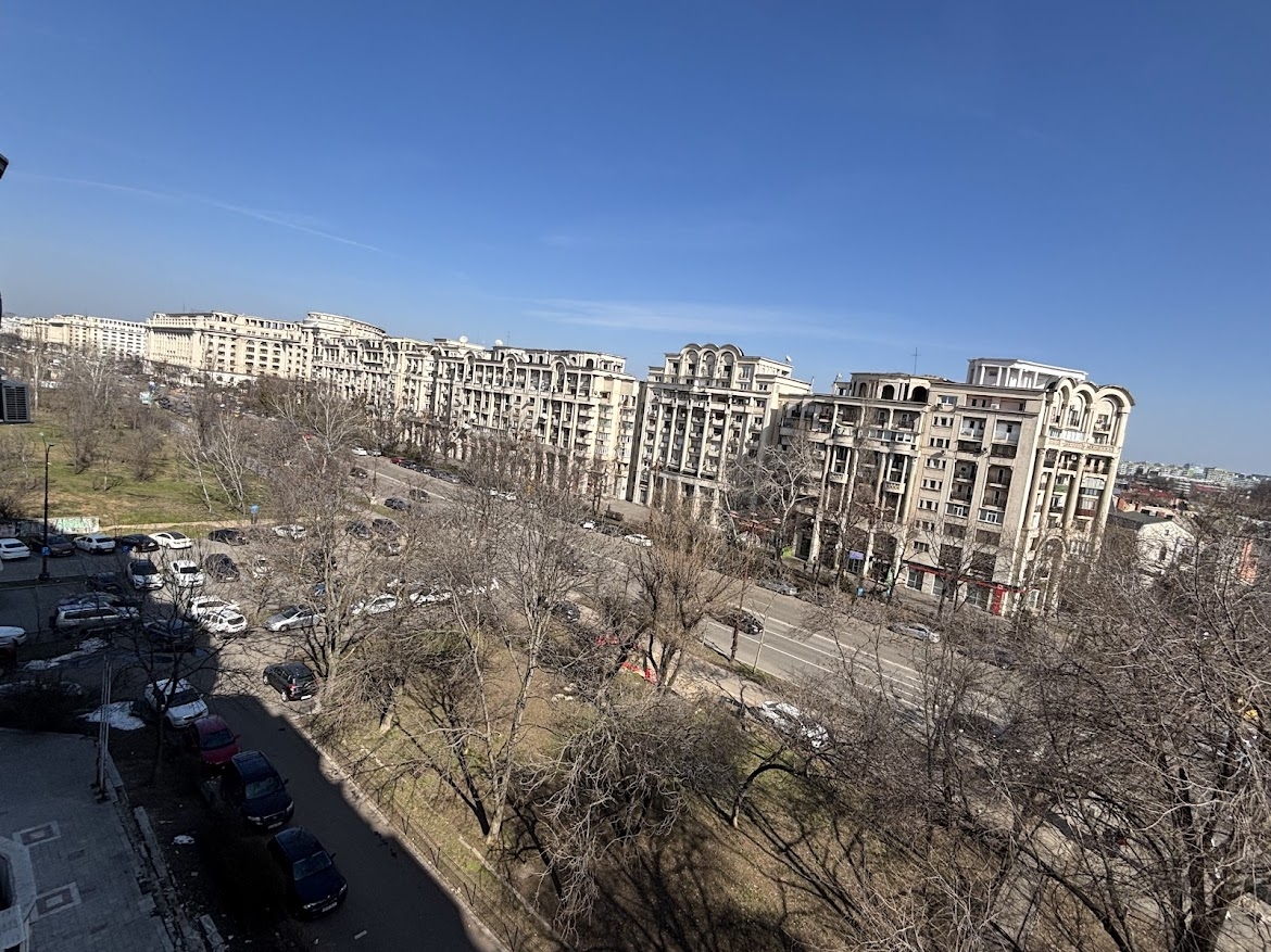 Vedere in fata la Piata Regina Maria (rondul George Cosbuc) si in spate catre Primaria Sector 4. Orientare Est - Vest. Modificarile sunt facute cu proiect si autorizatie de construire. Apartamentul este intabulat la Oficiul de Cadastru conform situatiei actuale.