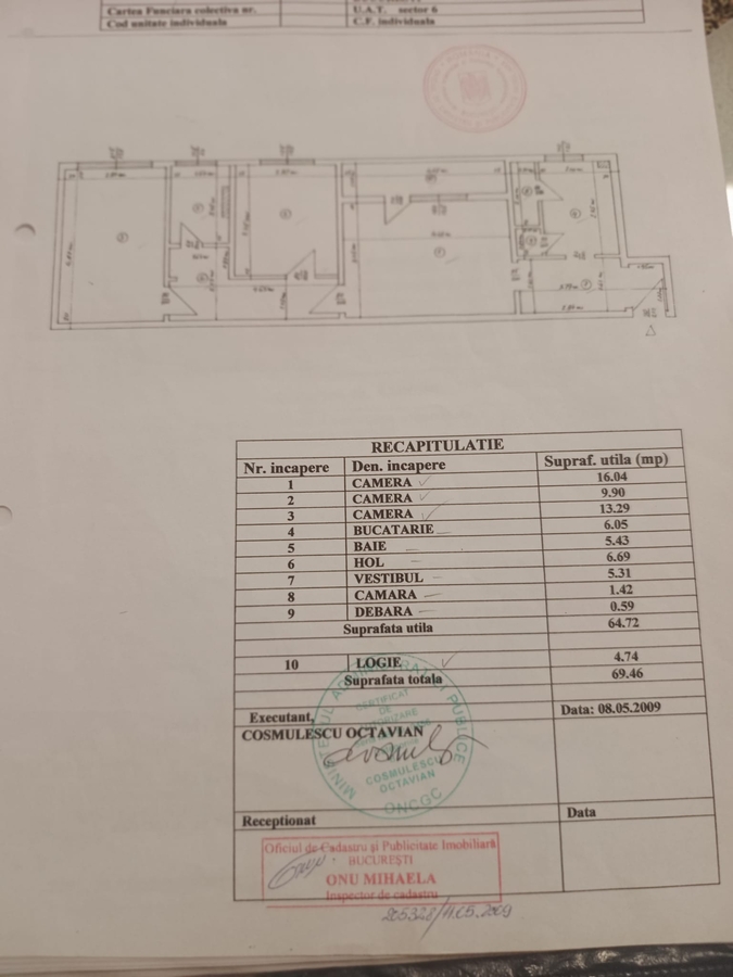 cf 1 semidec, etaj 3/4, suprafata 70 mp, geam la baie boc reabilitat termic , renovat