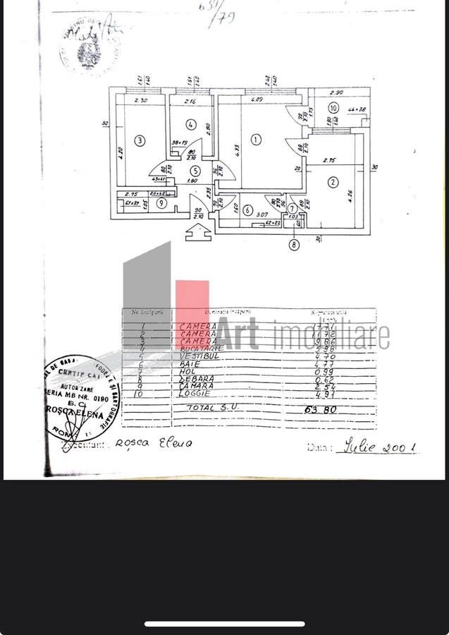 Apartamentul este semidecomandat si are o suprafata totala de 63,8 mp din care balcon 4,91.