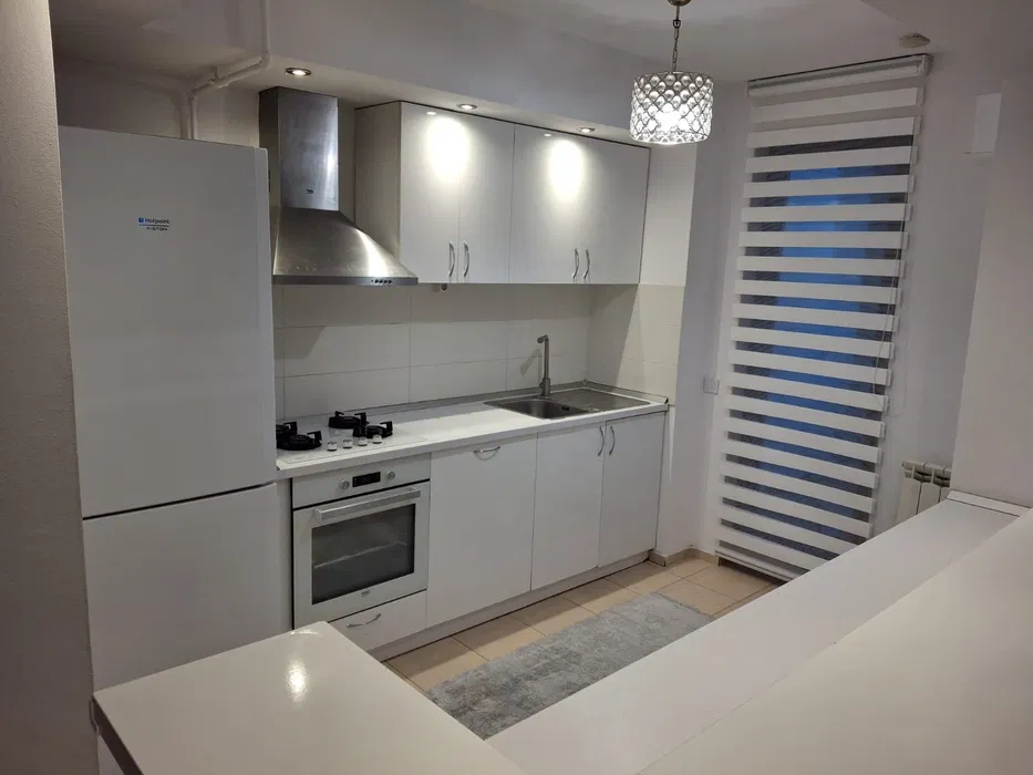 - bucatarie mobilata, dotata cu frigider, masina de spalat vase, plita, cuptor electric, hota, toate incorporate in mobilier;