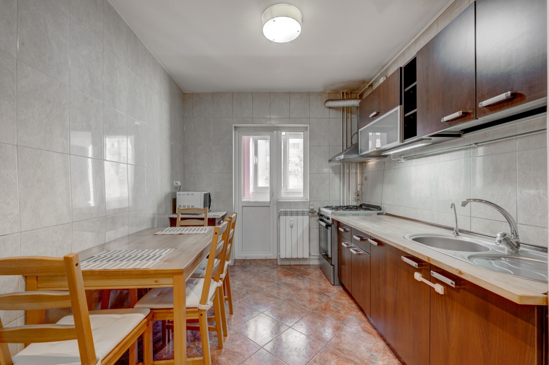 Apartamentul este in stare buna, dotat cu tamplarie pvc cu geam termopan la toate ferestrele, 1 aparat de aer conditionat, pardoseli placate cu parchet laminat. Usile interioare sunt din lemn ( cele originale), caloriferele au fost inlocuite, instalatiile sanitare au fost schimbate iar la partea electrica, circuitele sunt schimbate partial.